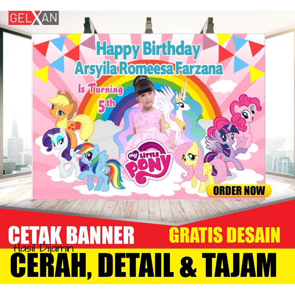 Banner Backdrop Ulang Tahun Ultah Anak Spanduk Banner Cetak Mmt My Little Pony