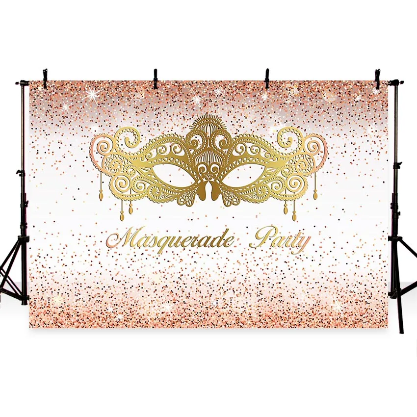 Us 8 25 34 Off Masquerade Pesta Ulang Tahun Banner Latar Belakang Merah Muda Dan Emas Gemerlapnya Emas Masker Latar Belakang Dekorasi Gadis Foto